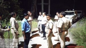 रात में मौके का निरीक्षण करते वन विभाग के कर्मचारी