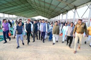 निरीक्षण के दौरान उन्होंने मंच व्यवस्था, डोम, साउंड, सुरक्षा, यातायात, पेयजल, विद्युत, साफ-सफाई एवं आवागमन, पार्किंग से जुड़ी व्यवस्थाओं का अवलोकन कर संबंधित अधिकारियों को आवश्यक दिशा-निर्देश दिए। उन्होंने निर्देश दिए कि कार्यक्रम स्थल पर मूलभूत सुविधाओं के साथ-साथ दिव्यांगजन, बुजुर्गों एवं महिलाओं के लिए विशेष व्यवस्थाएं की जाएं।
